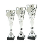 Zestaw pucharów BI ET.412 – eleganckie srebrne trofea na kamiennej podstawie