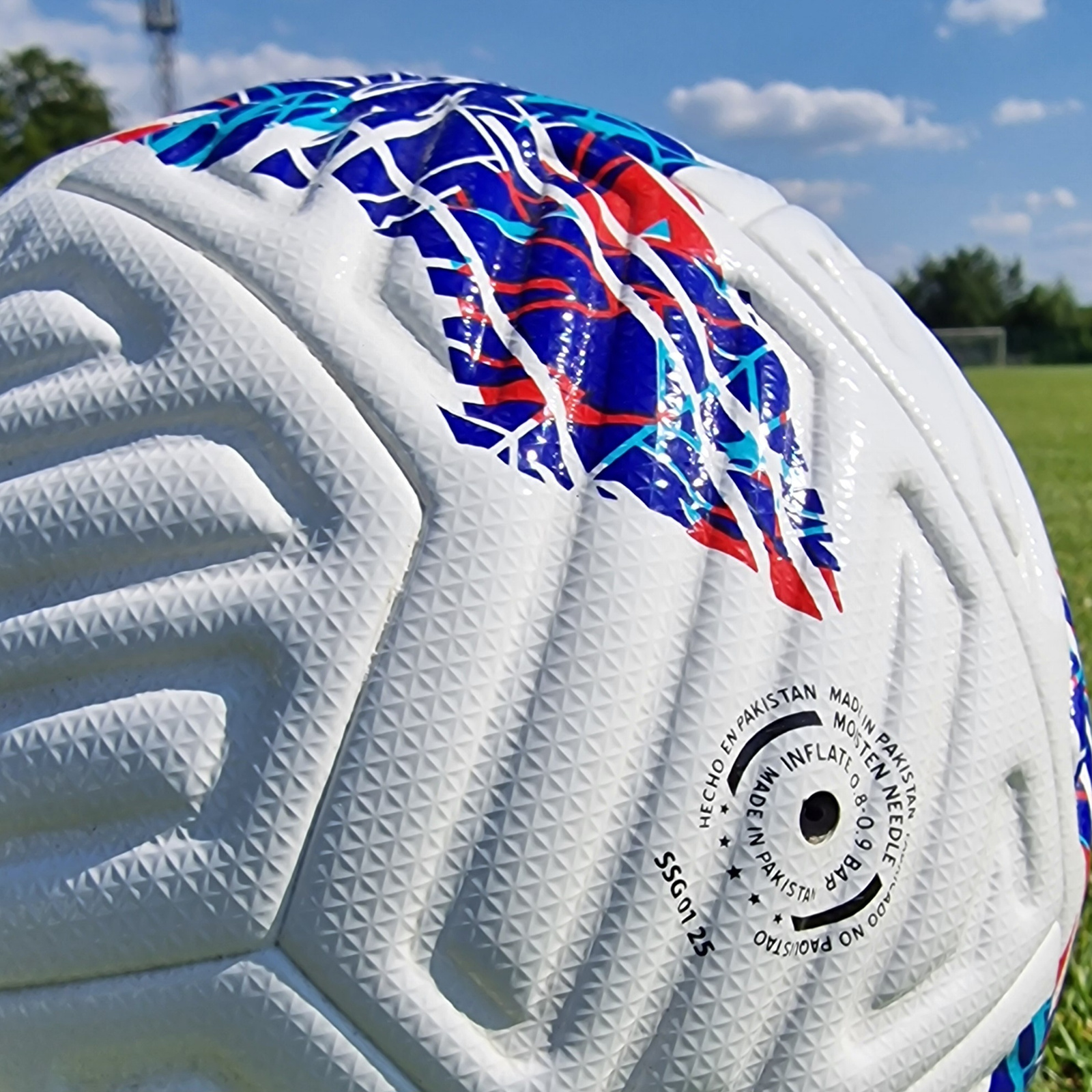 - Konstrukcja – 12 paneli łączonych technologią Hybrid Seam, które gwarantują stabilny lot i kontrolę nad piłką.