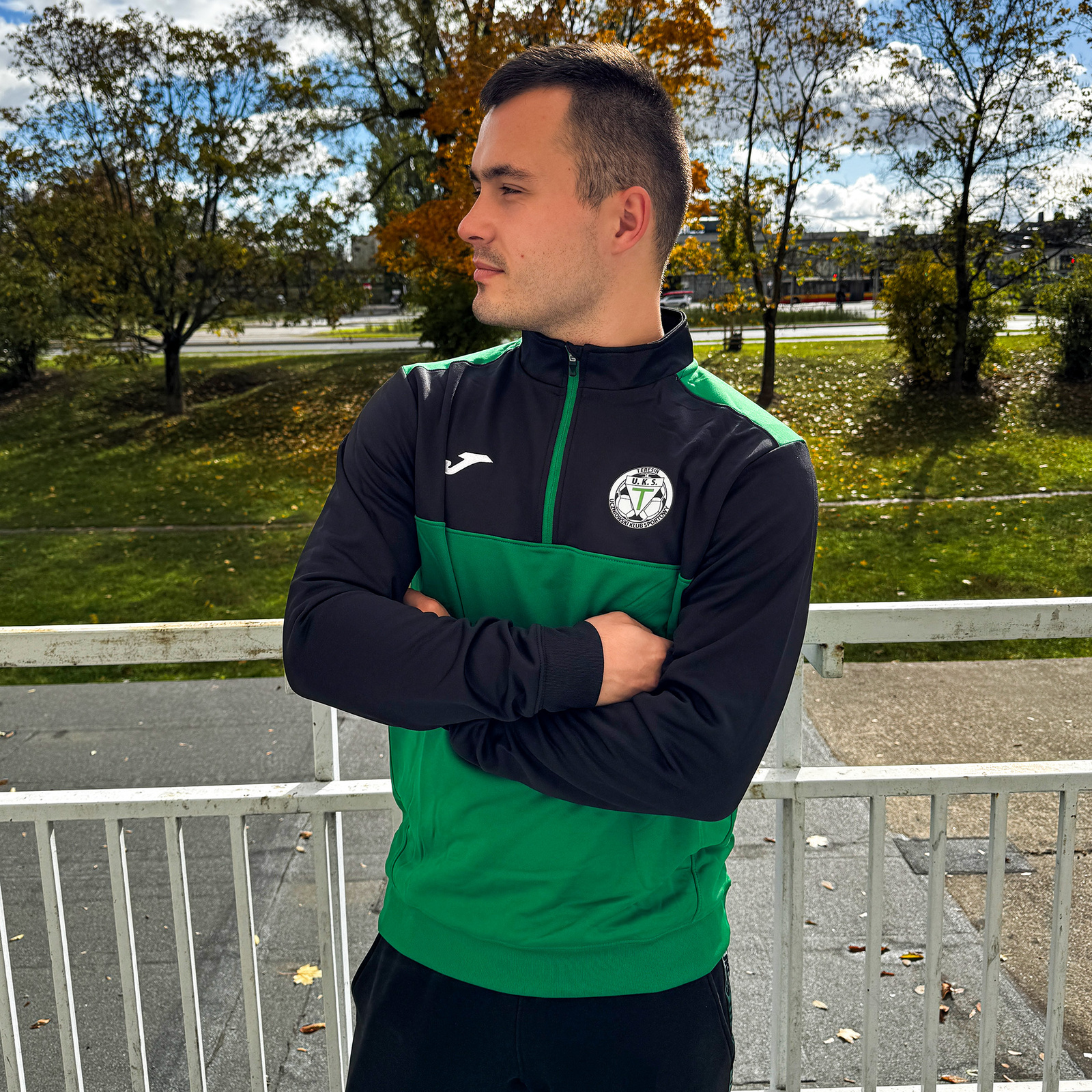 - Bluza marki Joma. Posiada krótki zamek, a na plecach umieszczono nazwę klubu. Wyjątkowego charakteru dodaje jej drukowany herb DTF, który jest jednocześnie trwały i estetyczny.