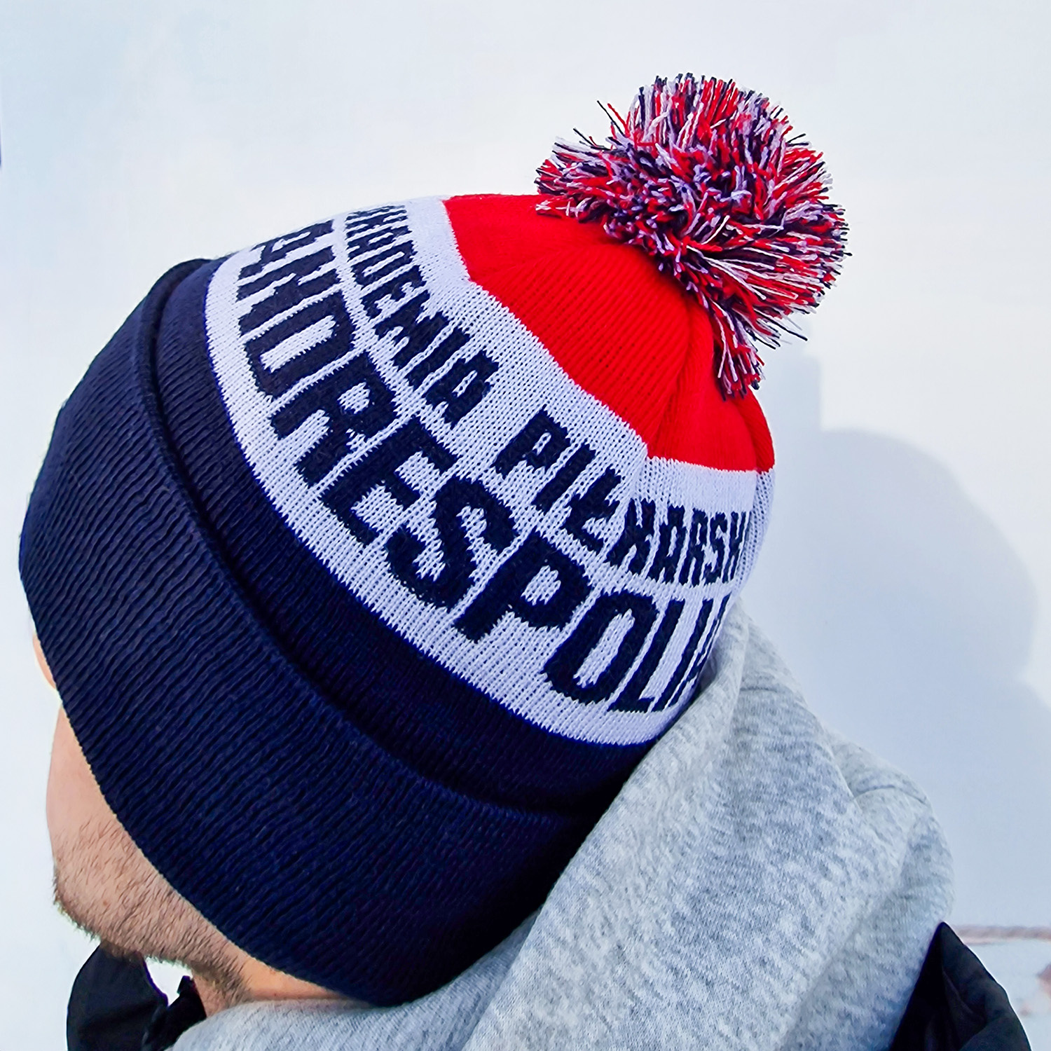 W pełni personalizowana czapka z pomponem.
