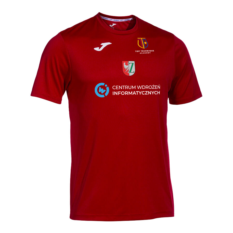 Koszulka bramkarska meczowa Top Technique Academy w kolorze czerwonym bazuje na modelu Joma Combi 100052.600. Ta klasyczna, piłkarska koszulka o regularnym kroju, krótkim rękawie i okrągłym dekolcie, wykonana z lekkiego i oddychającego materiału zapewniającego szybkie odprowadzanie wilgoci i komfort nawet przy intensywnej grze. Dzięki temu sportowcy czują się suchsi i bardziej komfortowo podczas całego meczu. Koszulka została wzbogacona o nadruki klubowe i sponsorów oraz duży numer na plecach, co podkreśla tożsamość Twojego zespołu.