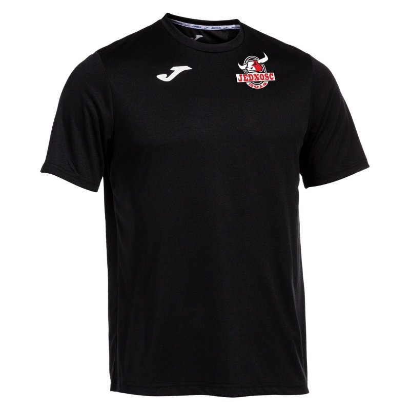 Koszulka meczowa Jedność Warszawa w czarnym kolorze bazuje na modelu Joma Combi 100052.100. Ta klasyczna, piłkarska koszulka o regularnym kroju, krótkim rękawie i okrągłym dekolcie, wykonana z lekkiego i oddychającego materiału zapewniającego szybkie odprowadzanie wilgoci i komfort nawet przy intensywnej grze. Produkt personalizowany – herb klubu wykonany metodą DTF, a nazwisko i numer na plecach z folii flex.