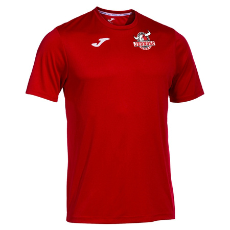 Koszulka meczowa Jedność Warszawa w kolorze czerwonym bazuje na modelu Joma Combi 100052.600. Ta klasyczna, piłkarska koszulka o regularnym kroju, krótkim rękawie i okrągłym dekolcie, wykonana z lekkiego i oddychającego materiału zapewniającego szybkie odprowadzanie wilgoci i komfort nawet przy intensywnej grze. Produkt personalizowany – herb klubu wykonany metodą DTF, a nazwisko i numer na plecach z folii flex.