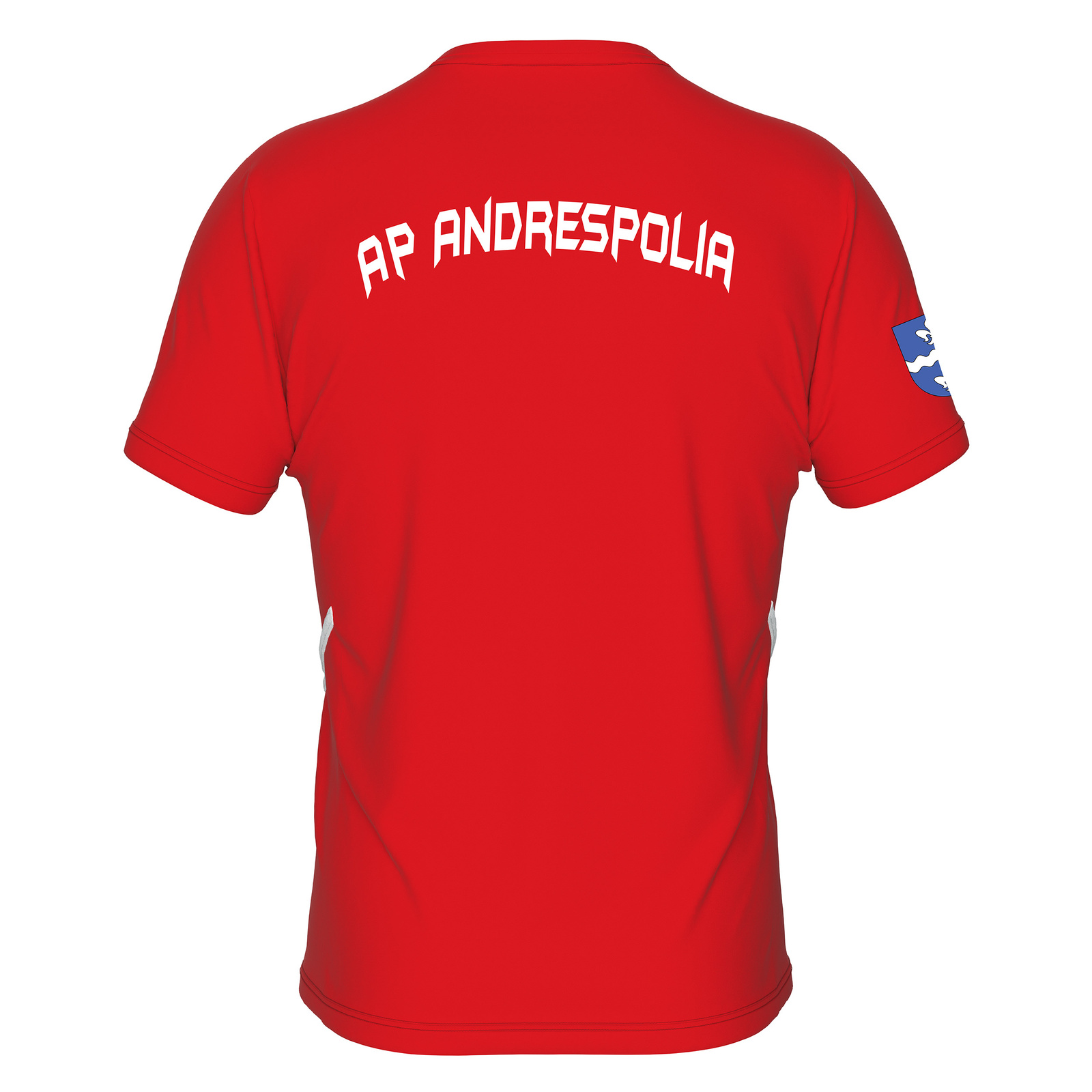 Koszulka treningowa AP Andrespolia czerwona – herb klubu i gminy, napis na plecach