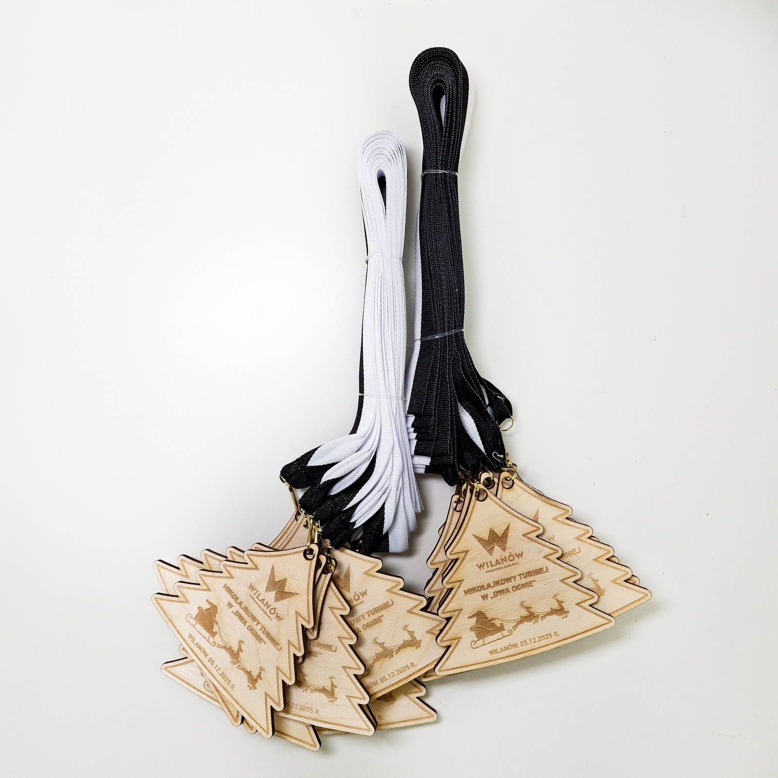 - Medal drewniany grawerowany laserowo, jednostronnie. Dowolny kształt i treść. Średnica ok. 70mm. Czas realizacji ok. 2 tygodnie od zatwierdzenia projektu. Minimum 30 szt.