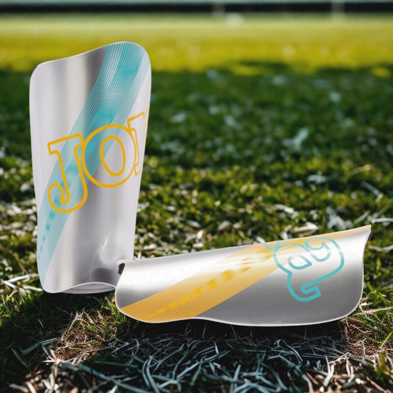 Metaliczny design z personalizowanym nadrukiem i logo Joma, które formuje się po połączeniu obu chochelek.