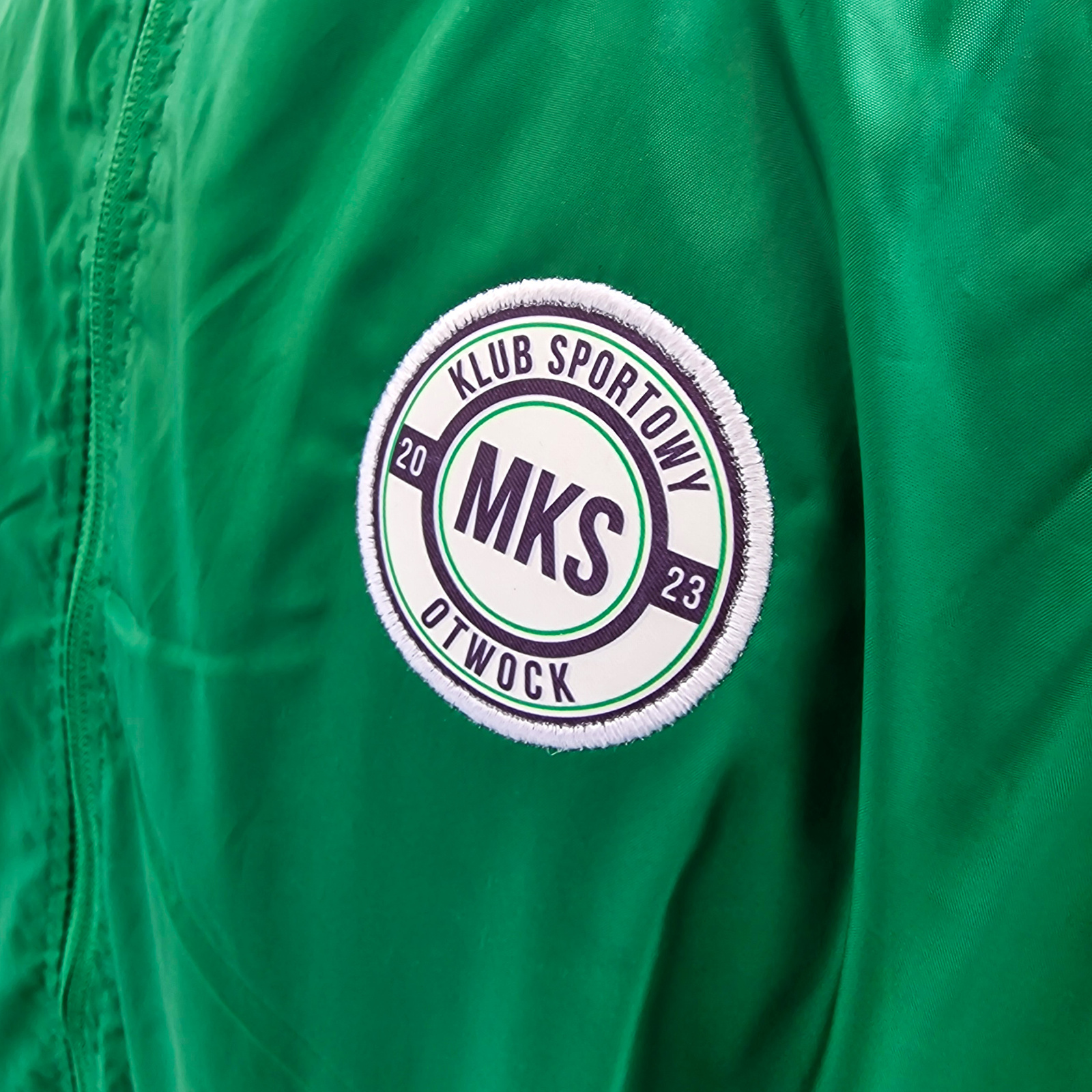 Przedstawiamy Ortalion MKS OTWOCK zielony – zapinany ortalion przeciwdeszczowy Klubu Sportowego MKS Otwock z chowanym kapturem, kieszeniami, elastycznymi mankietami, podszewką poprawiającą wentylację i wszytym żakardowym herbem. Personalizowany produkt dla zawodników i kibiców – realizacja w 5-10 dni!