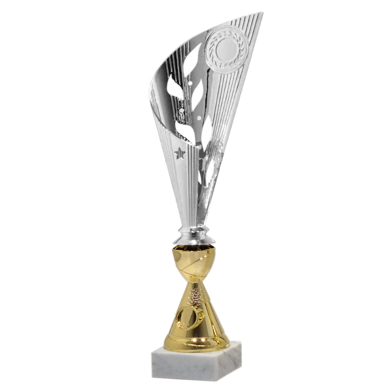 | Kolor | Srebrno-złoty puchar i biała podstawa |