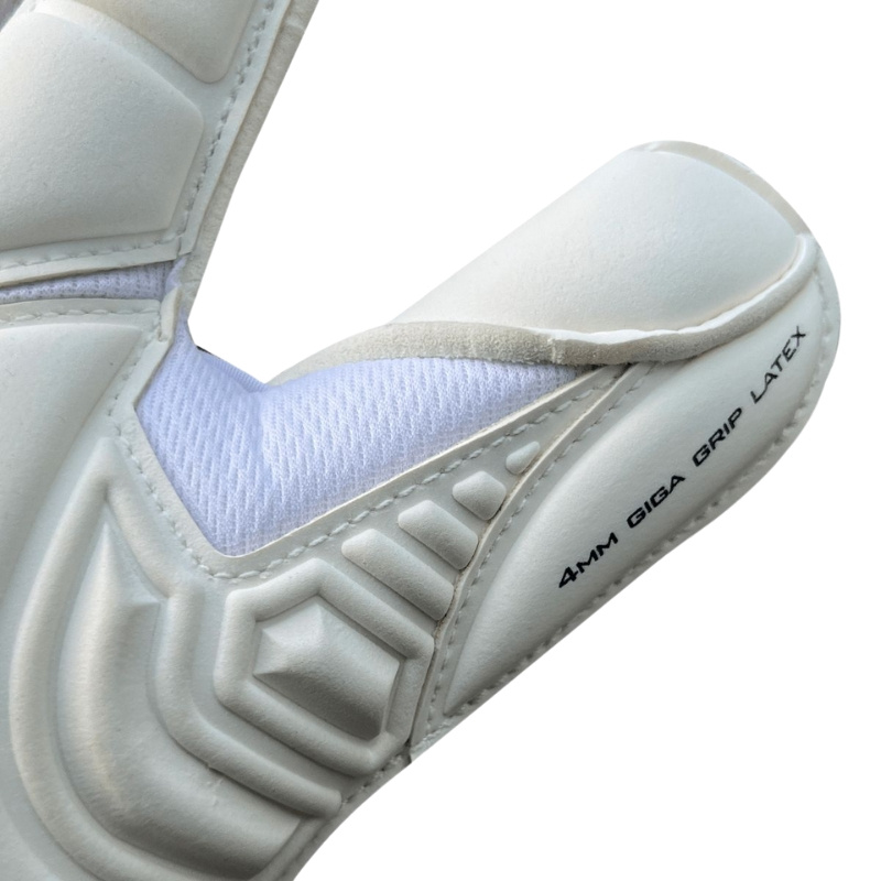 Rękawice 4Keepers Gold VII RF2G junior został zaprojektowany z myślą o młodszych zawodnikach pragnących profesjonalnego sprzętu. Jego powierzchnia chwytna to pianka GIGA GRIP, która zapewnia bardzo dobrą przyczepność przy kontakcie z piłką, szczególnie na trawie. Korpus rękawic wykonany jest z Jacquard Mesh z dodatkową warstwą 8 mm pianki, co daje lepszą amortyzację przy interwencjach i wspiera cyrkulację powietrza w dłoni. Krój palców to Roll Finger Second Generation (RF2G) – nowsza wersja klasycznego roll finger, z mniejszą ilością bocznych szwów, co zwiększa komfort użytkowania i czucie piłki. Zapięcie stanowi elastyczny pasek lateksowy, który stabilizuje nadgarstek podczas dynamicznych ruchów. Model ten skierowany jest do graczy występujących na nawierzchni naturalnej, dla których priorytetem jest komfort i skuteczność w interwencjach.