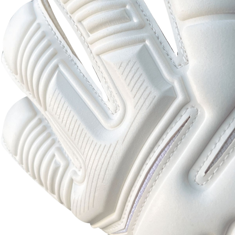 Ten wariant rękawic z linii Champ cechuje się minimalistycznym, jednolitym białym kolorem, który podkreśla profesjonalizm i uniwersalność. Powierzchnia chwytna wykonana jest z pianki GIGA GRIP, zapewniającej solidne trzymanie piłki na trawie. Ciało rękawicy z Jacquard Mesh + 8 mm pianki wspiera amortyzację uderzeń i poprawia odprowadzanie wilgoci z dłoni. Wzbogacono je o krój Roll Finger Second Generation (RF2G), który redukuje nadmiar szwów i poprawia kontakt palców z piłką. Zapięcie w formie elastycznego paska lateksowego stabilizuje nadgarstek, zapewniając komfort w dynamicznych sytuacjach. Model jest dedykowany do nawierzchni naturalnej.