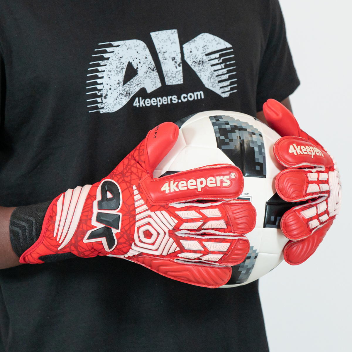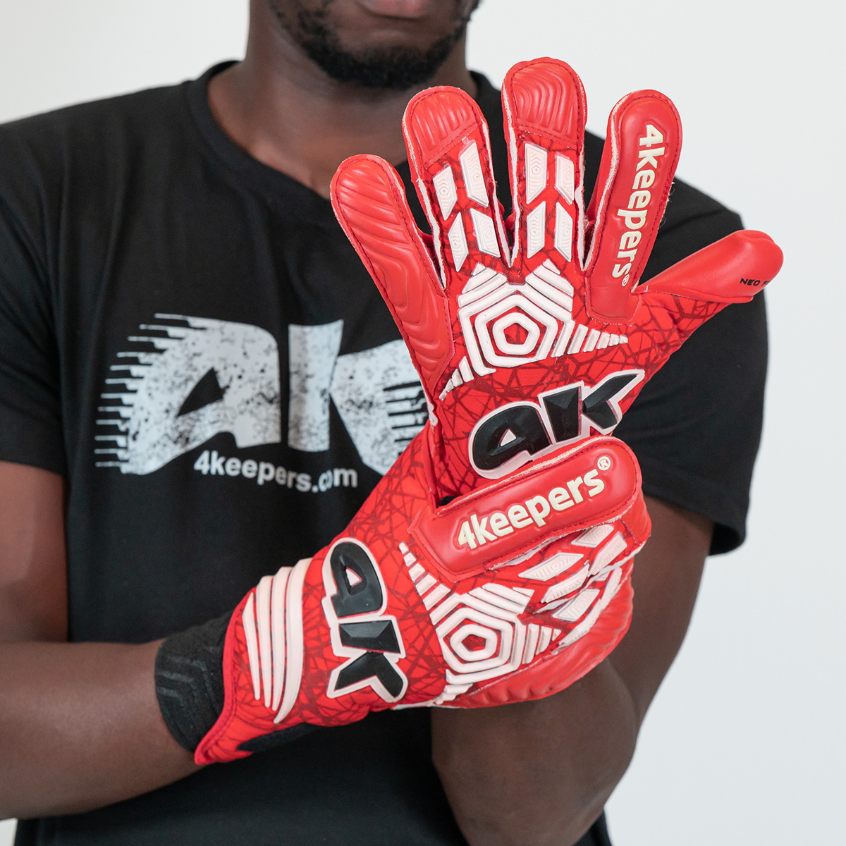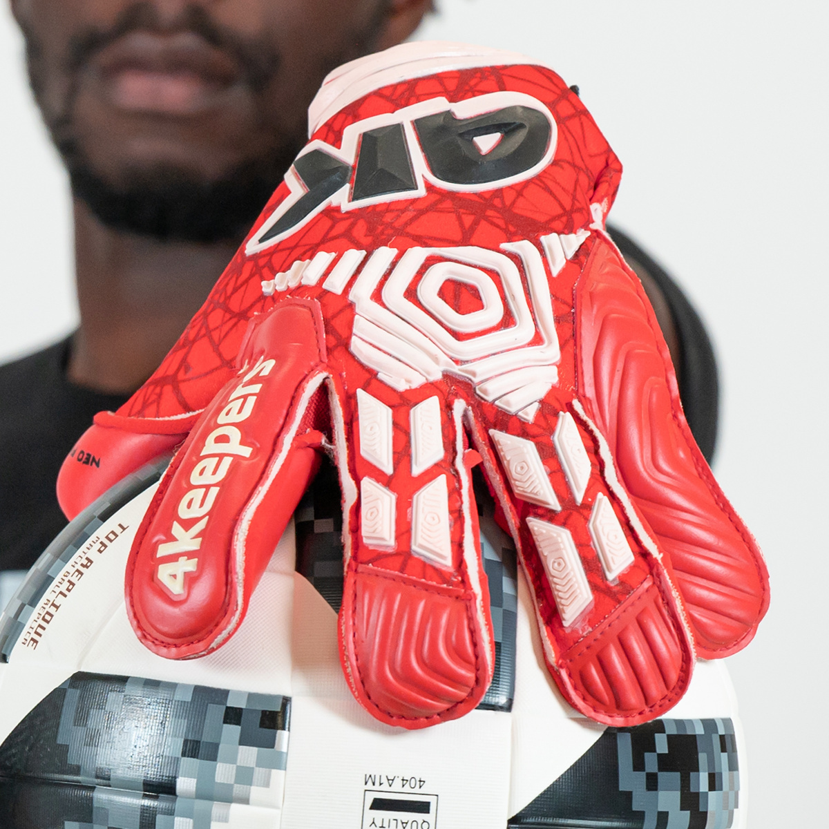 - Zestaw rękawic bramkarskich 4Keepers NEO RODEO RF2G Junior z płynem czyszczącym. Technologia NEW BASIC GRIP. Krój Roll Finger Second Gen. Nowoczesna czerwona kolorystyka z białymi akcentami