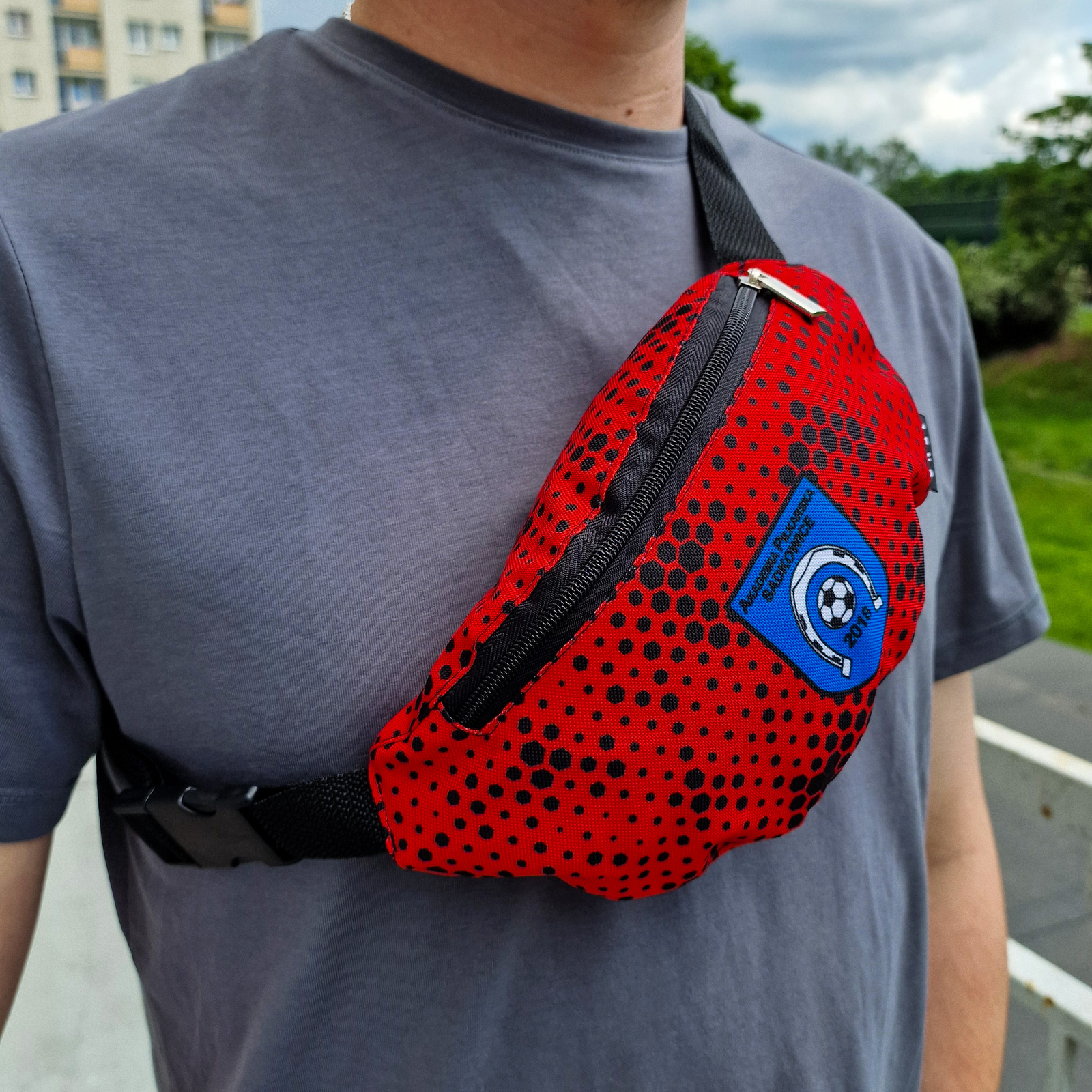 - Popularna saszetka przypinana do pasa lub do założenia na tułów. Jedna kieszonka, regulowany pasek. W 100% dowolna grafika wykonana metodą sublimacji. Minimum 20 szt, realizacja ok. 2 tygodnie.
