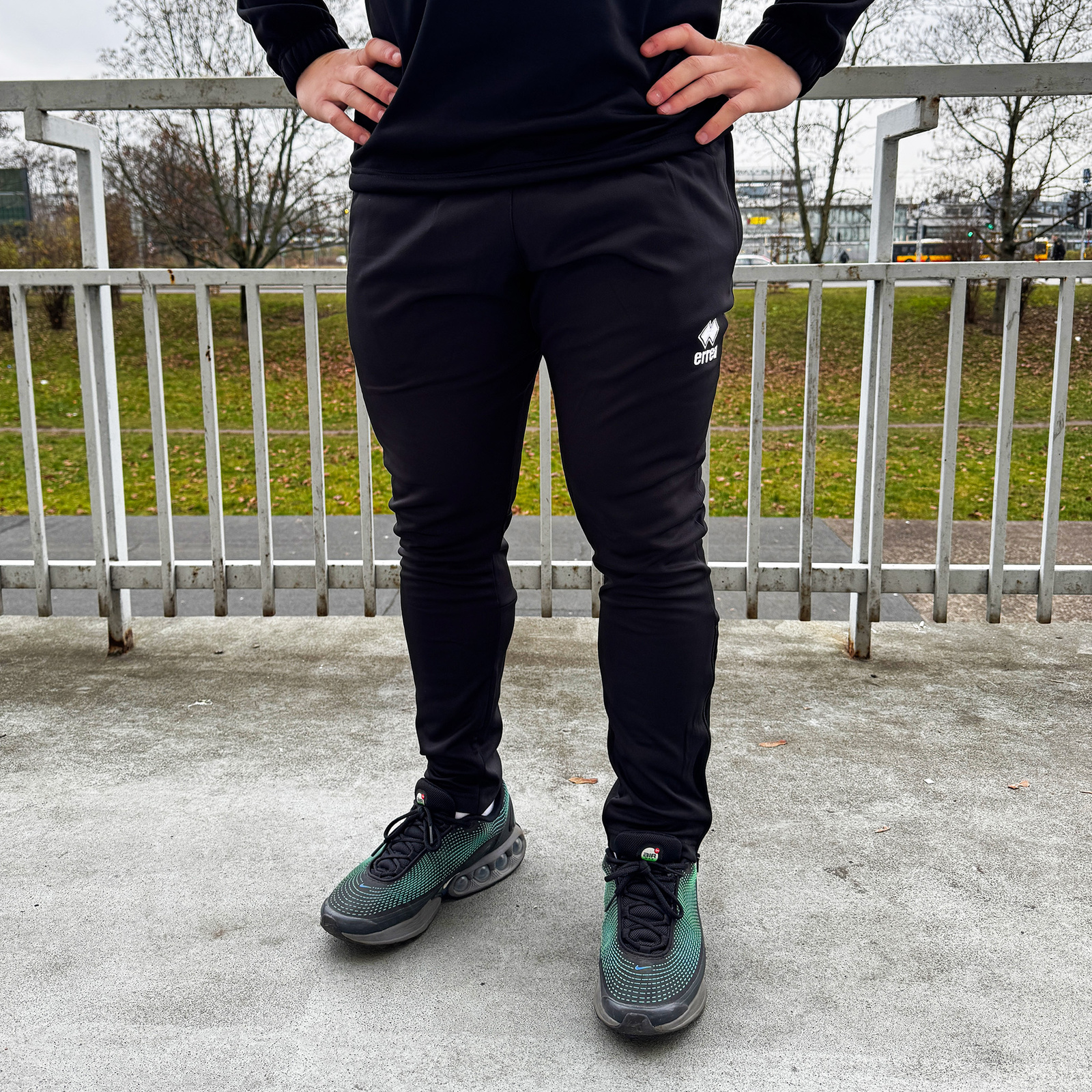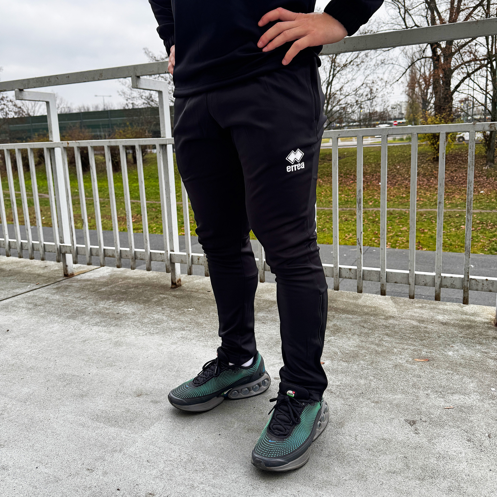 - Spodnie Errea Flann EP1H0Z00120 (senior), EP1H1Z00120 (junior), EP1Z2Z00120 (dziecko) w klasycznej czerni, zapewniają wygodę i swobodę ruchów. Wygodne kieszenie na zamek i praktyczne, rozpinane nogawki.