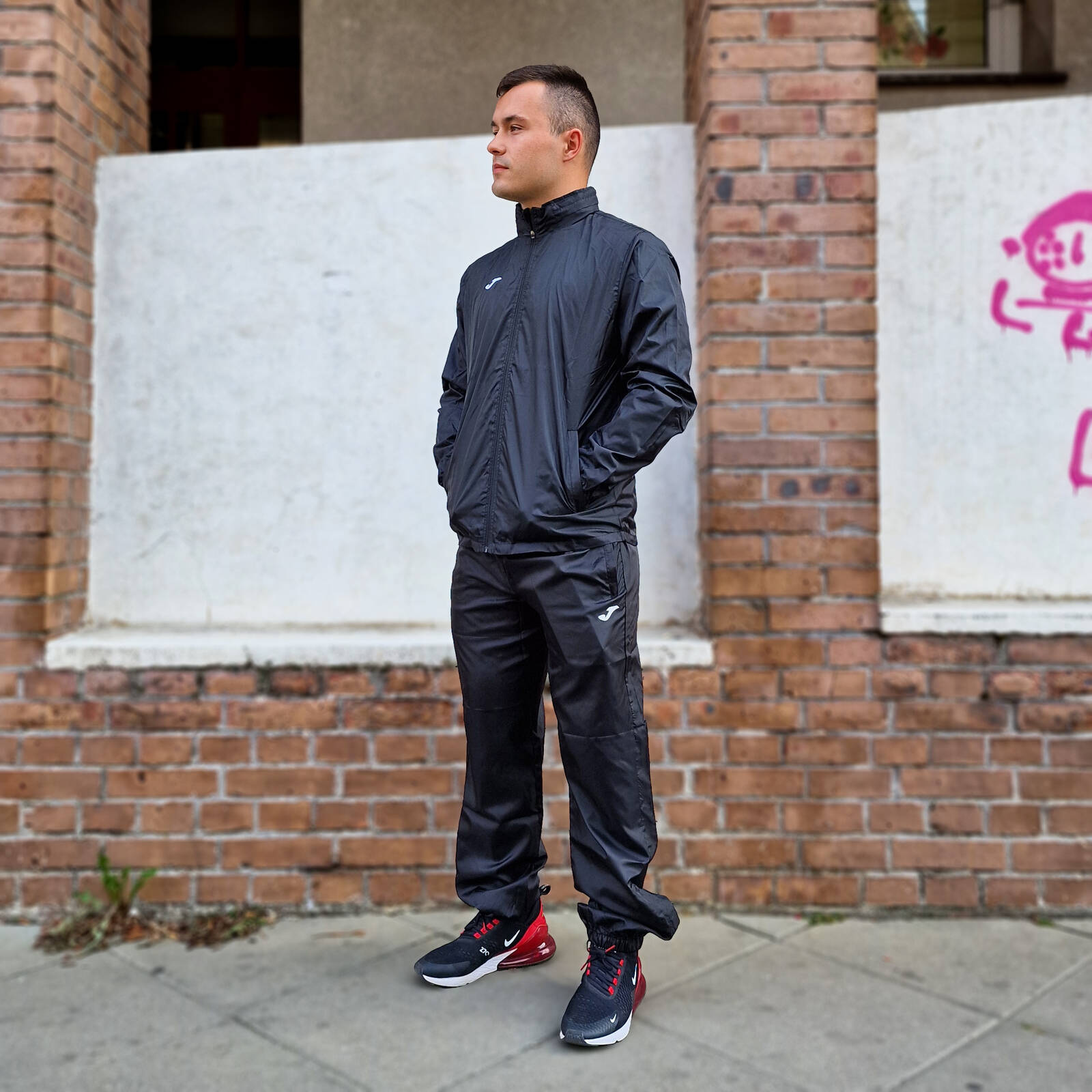 Zestaw ortalionowy Joma - czerwona kurtka Iris 100087.600 + czarne spodnie Leeds 100514.100, wodoodporny, oddychający