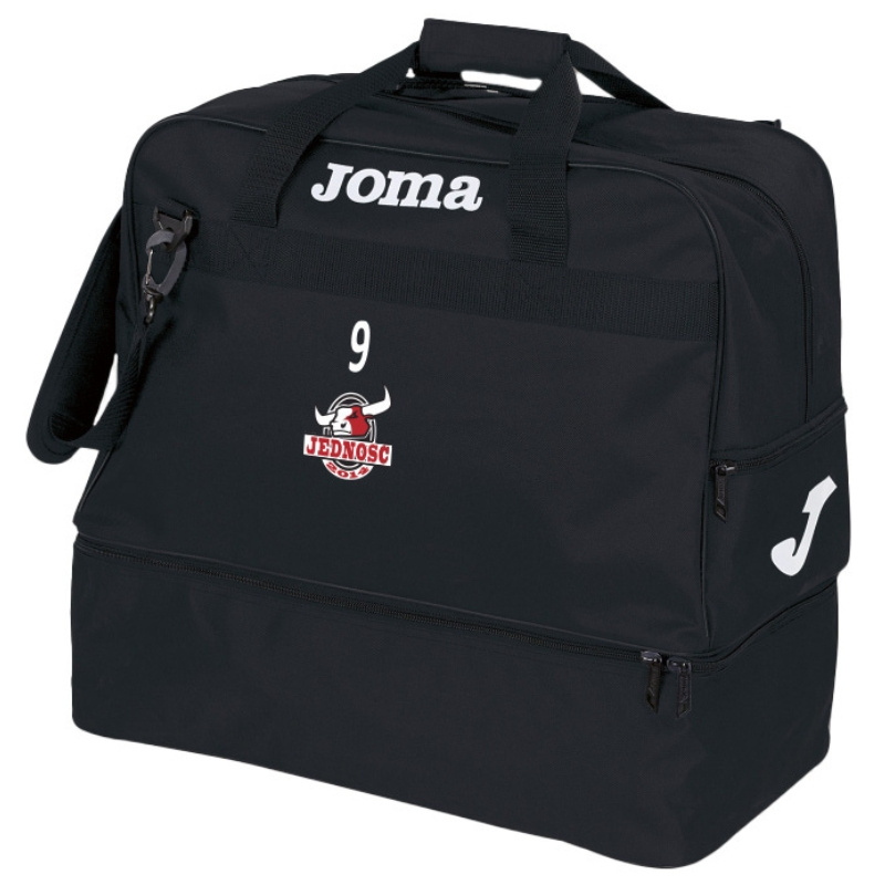 - Czarna torba Jedność Warszawa o pojemności 49,5 L. Podwójne dno, herb DTF i numer zawodnika. Realizacja 5-10 dni roboczych. Produkt bez możliwości zwrotu.
