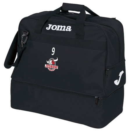 Torba Jedność Warszawa z herbem klubu i numerem zawodnika w czarnym kolorze. Jej największą zaletą jest podwójne dno, w którym możesz schować buty lub brudne ubrania. Pojemność 49,5 L pozwoli Ci spakować wszystko co potrzebne na trening. Produkt personalizowany – herb klubu DTF i numer zawodnika.