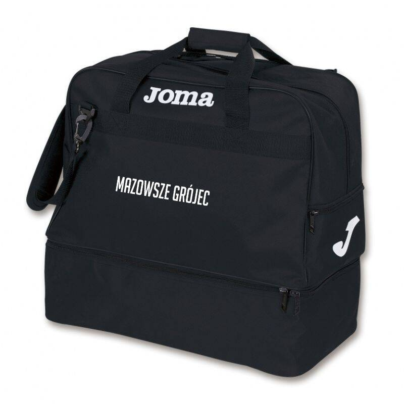 Torba JOMA MAZOWSZE GRÓJEC – treningowa z nadrukiem nazwy, poliamid, podwójne dno, personalizowana, czarna
