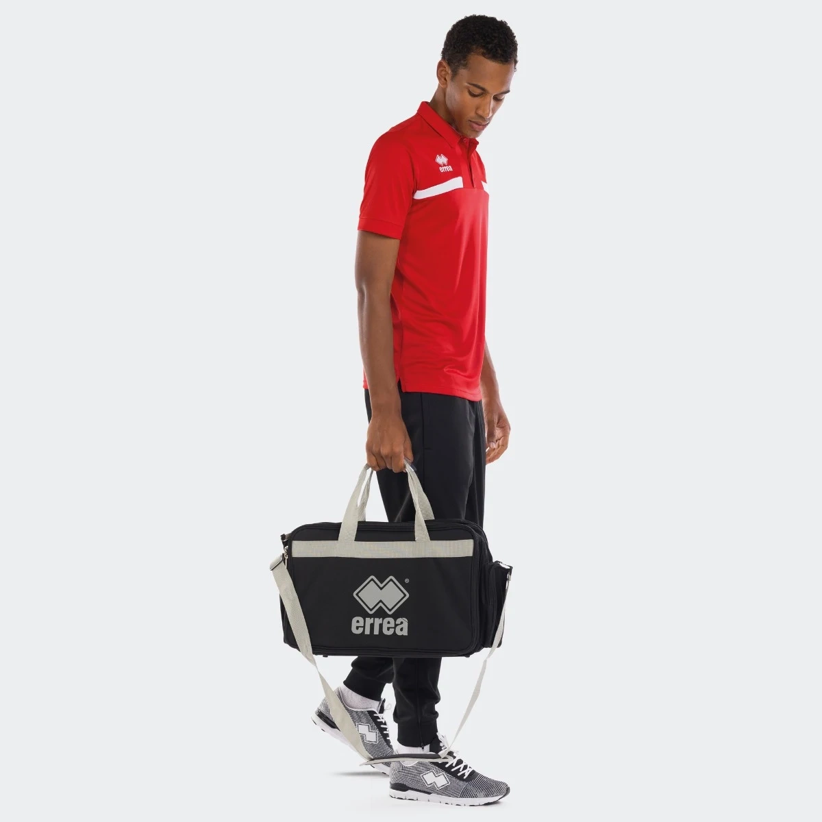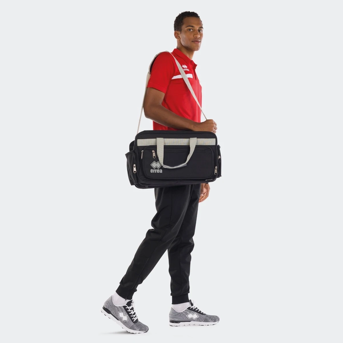 - Design: Klasyczny czarny kolor z subtelnym logo Erreà, nadający torbie profesjonalny wygląd.