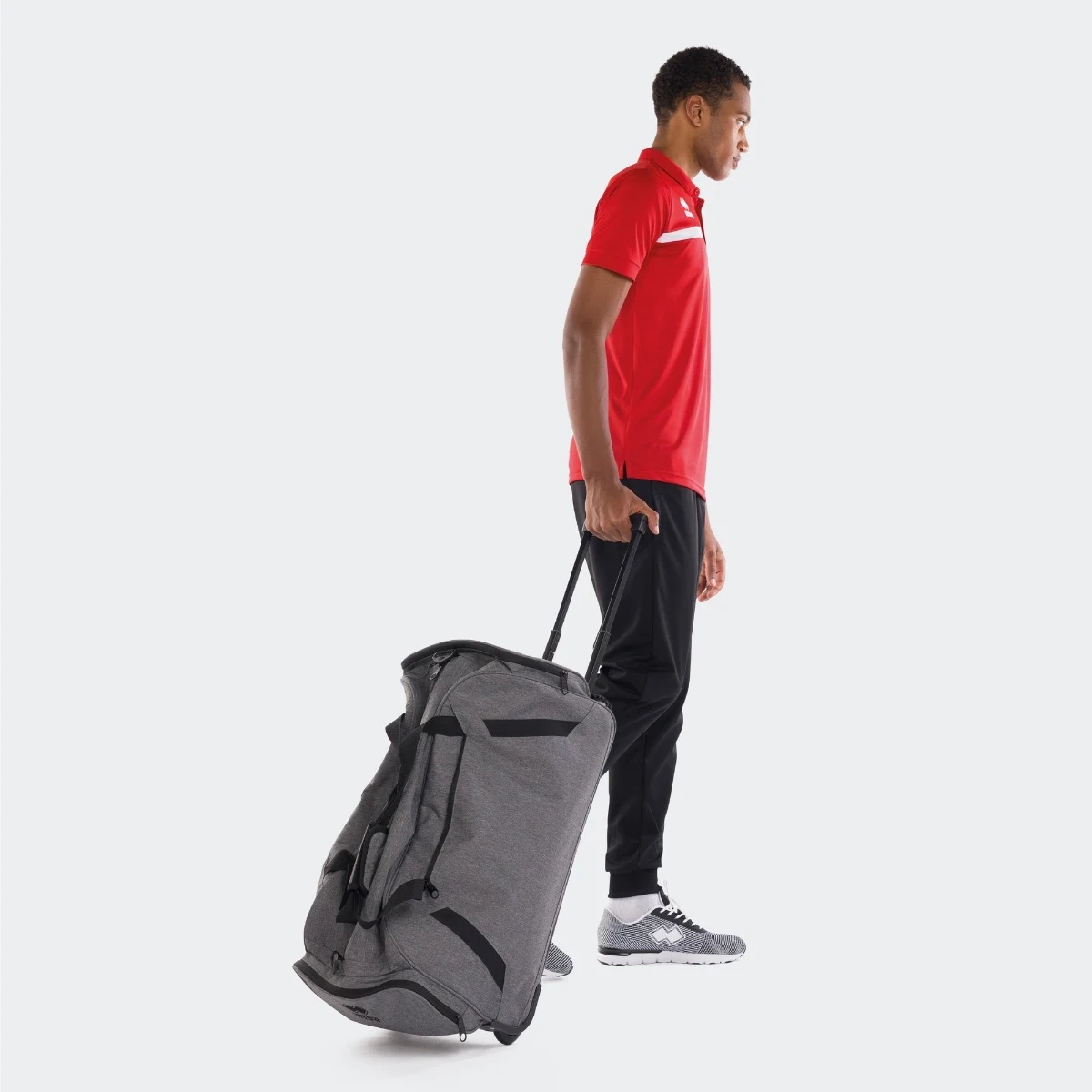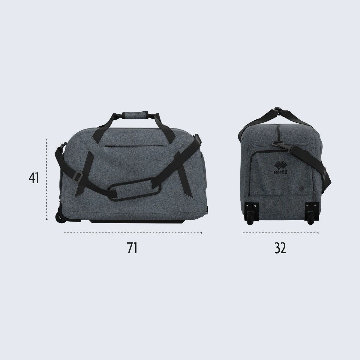 - Torba na kółkach Erreà Baja Trolley GA0D0Z32540 o pojemności 64 litrów, w eleganckim szarym melanżu, idealna do wygodnego transportu odzieży i akcesoriów podczas podróży.