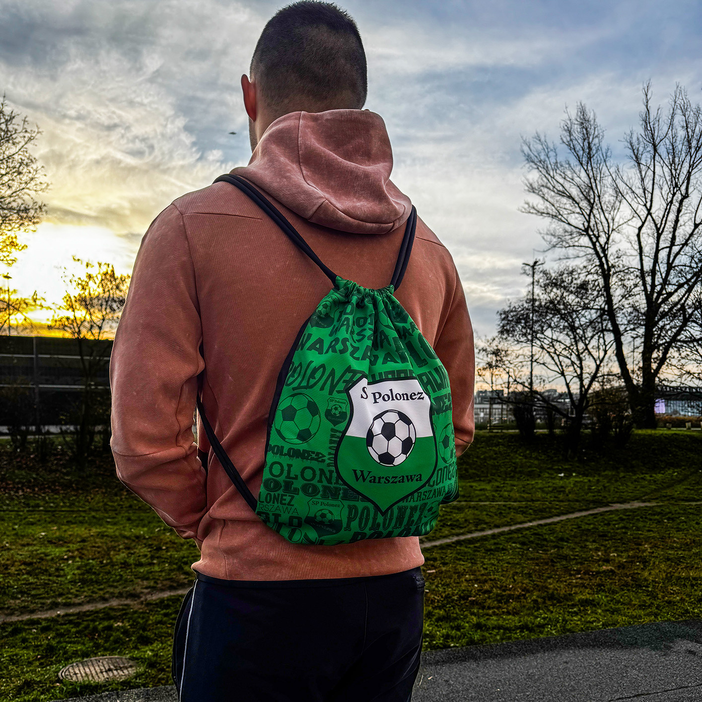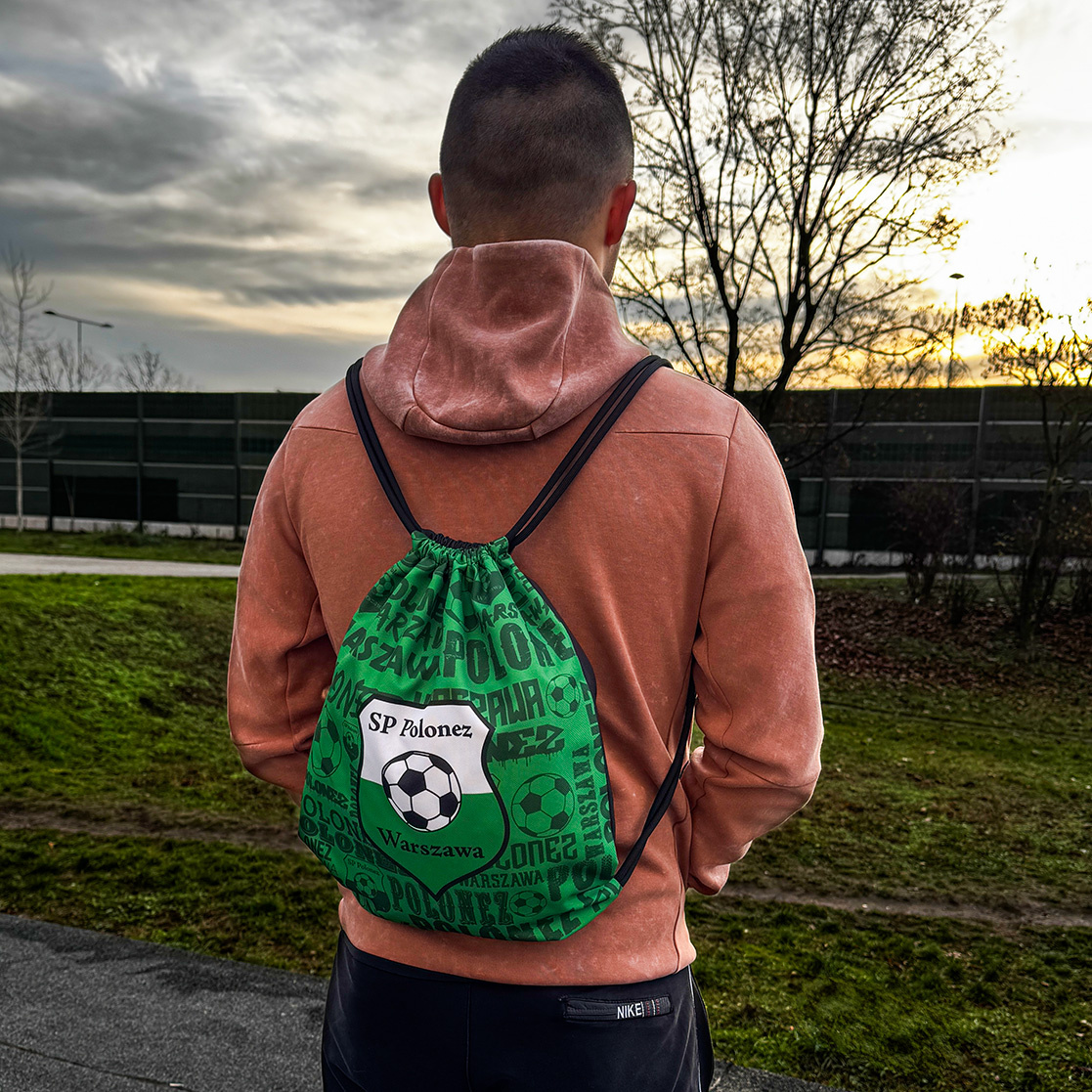 - Worek na plecy POLONEZ WARSZAWA: indywidualny wzór sublimowany, wtopiony w materiał, barwy klubowe. Praktyczny i lekki, idealny na trening.