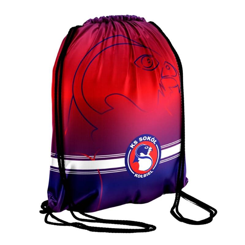 - Worek na plecy SOKÓŁ KOŁBIEL: indywidualny wzór sublimacja, wtopiony w materiał, w klubowych barwach (granatowo-czerwono-białych). Produkt w magazynie – wysyłka w 2 dni robocze.