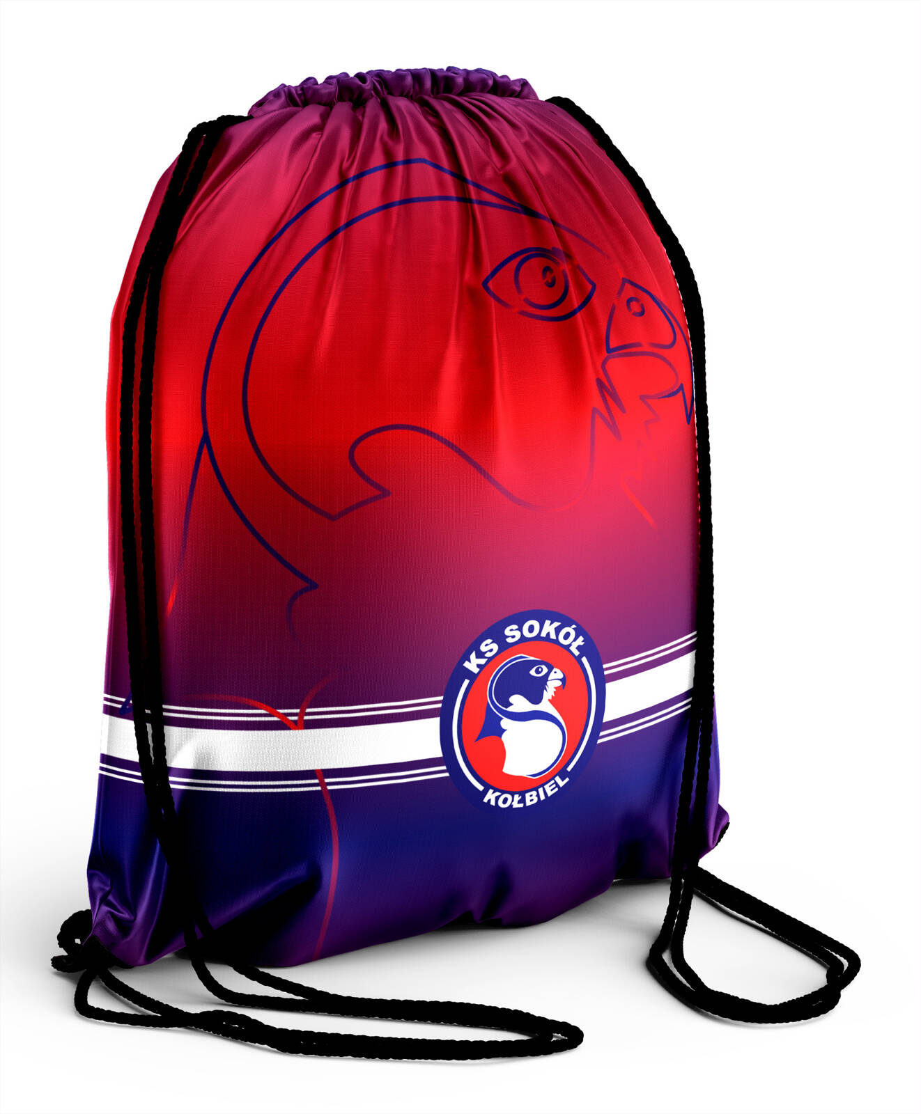 Przedstawiamy Worek na plecy SOKÓŁ KOŁBIEL – praktyczny worek z indywidualnym wzorem wykonanym metodą sublimacji, wtopionym w strukturę materiału, w klubowych barwach (granatowo-czerwono-białych). Produkt w magazynie – wysyłka w 2 dni robocze!