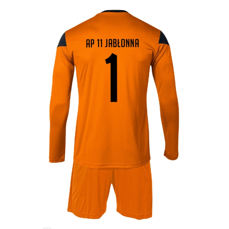 - Pomarańczowy zestaw bramkarski AP11 Jabłonna z getrami, herbem DTF, napisem i numerem na plecach FOLIA FLEX. Realizacja 5-10 dni roboczych. Produkt personalizowany, bez możliwości zwrotu.
