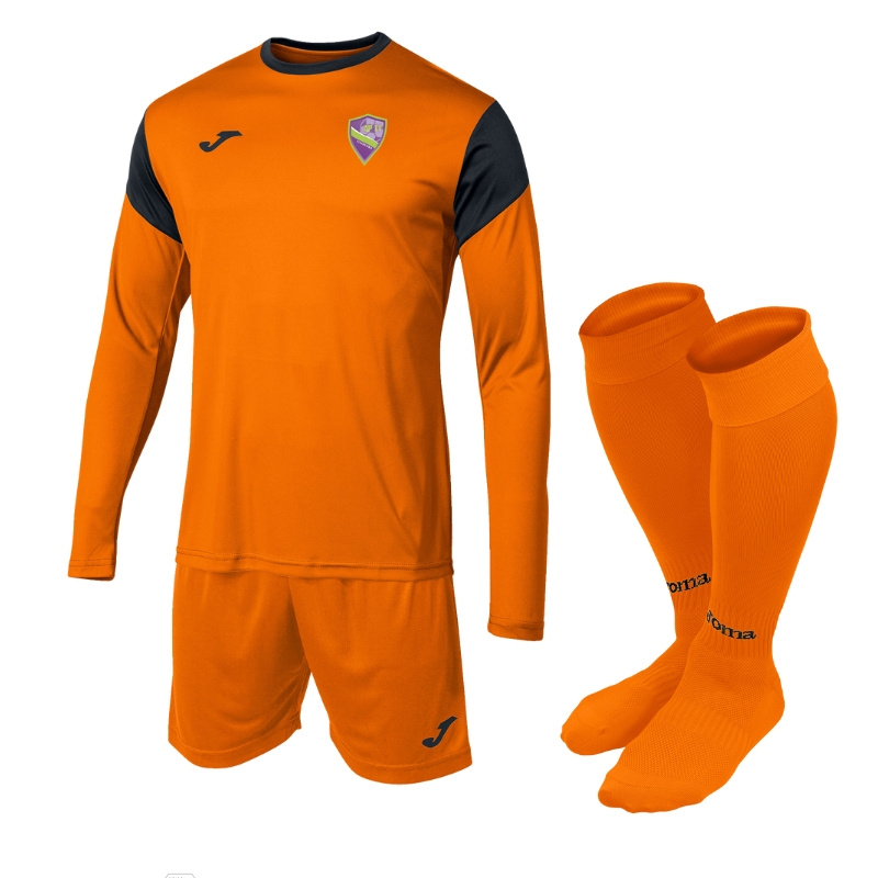 Zestaw bramkarski AP11 JABŁONNA pomarańczowy z getrami - herb, numer i nazwa na plecach