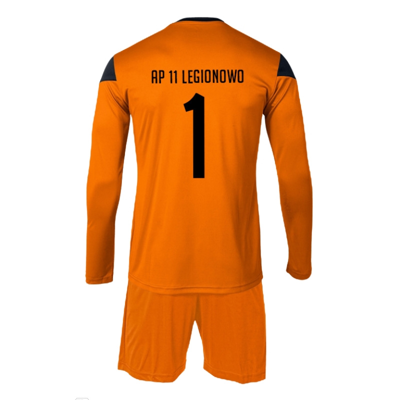 - Pomarańczowy zestaw bramkarski AP11 Legionowo z getrami, herbem DTF, napisem i numerem na plecach FOLIA FLEX. Realizacja 5-10 dni roboczych. Produkt personalizowany, bez możliwości zwrotu.