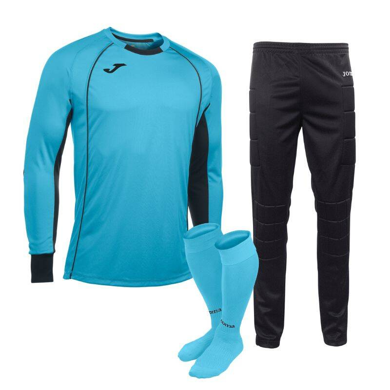 - Profesjonalny zestaw bramkarski JOMA PROTEC w turkusowo-czarnej kolorystyce. Trójczęściowy komplet: koszulka PROTECT LONG SLEEVE z długim rękawem, długie spodnie z ochraniaczami oraz getry. Wykonany z lekkiego, oddychającego materiału.