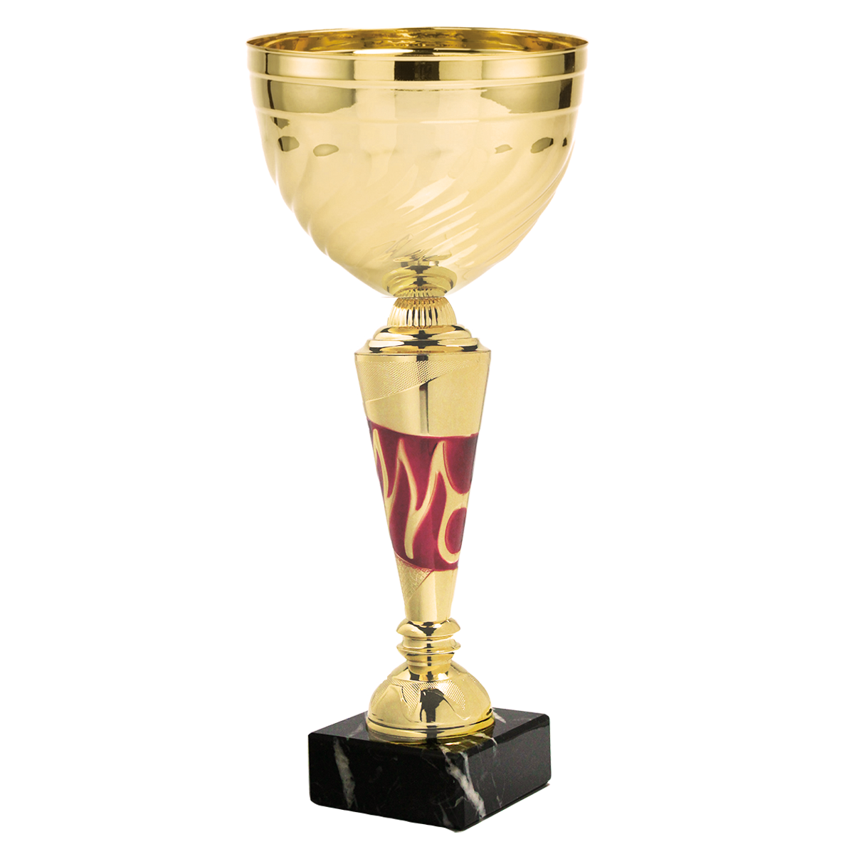 - Komplet pucharów BI BIE.SERIE34 – trzy prestiżowe trofea o wysokościach 33 cm, 31 cm i 28 cm. Złote kielichy z czerwonymi detalami i marmurową podstawą. Idealne na turnieje, nagrody sportowe i wyróżnienia.