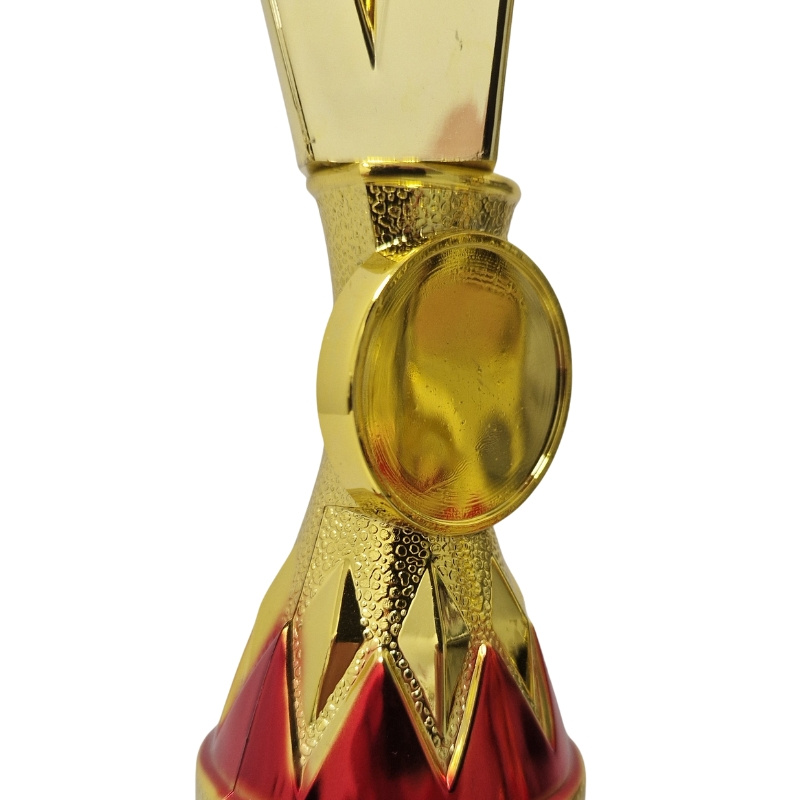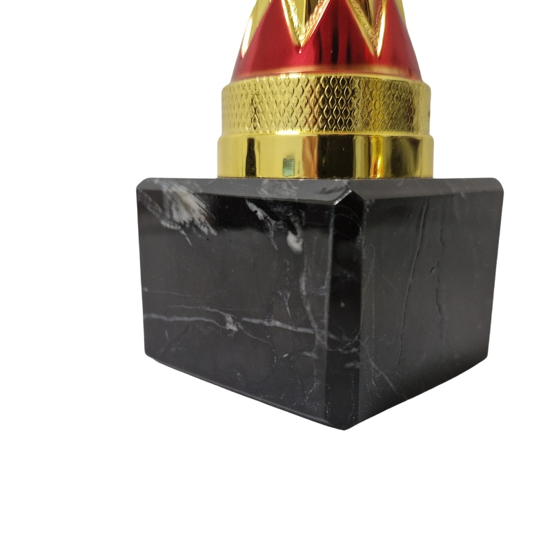 - Komplet pucharów BI BIE.SERIE89 – trzy złote trofea z czerwonym akcentem, o wysokościach 31 cm, 30 cm i 29 cm. Złote, kanciaste puchary z czerwonymi detalami i marmurową podstawą. Idealne na turnieje, nagrody sportowe i wyróżnienia.