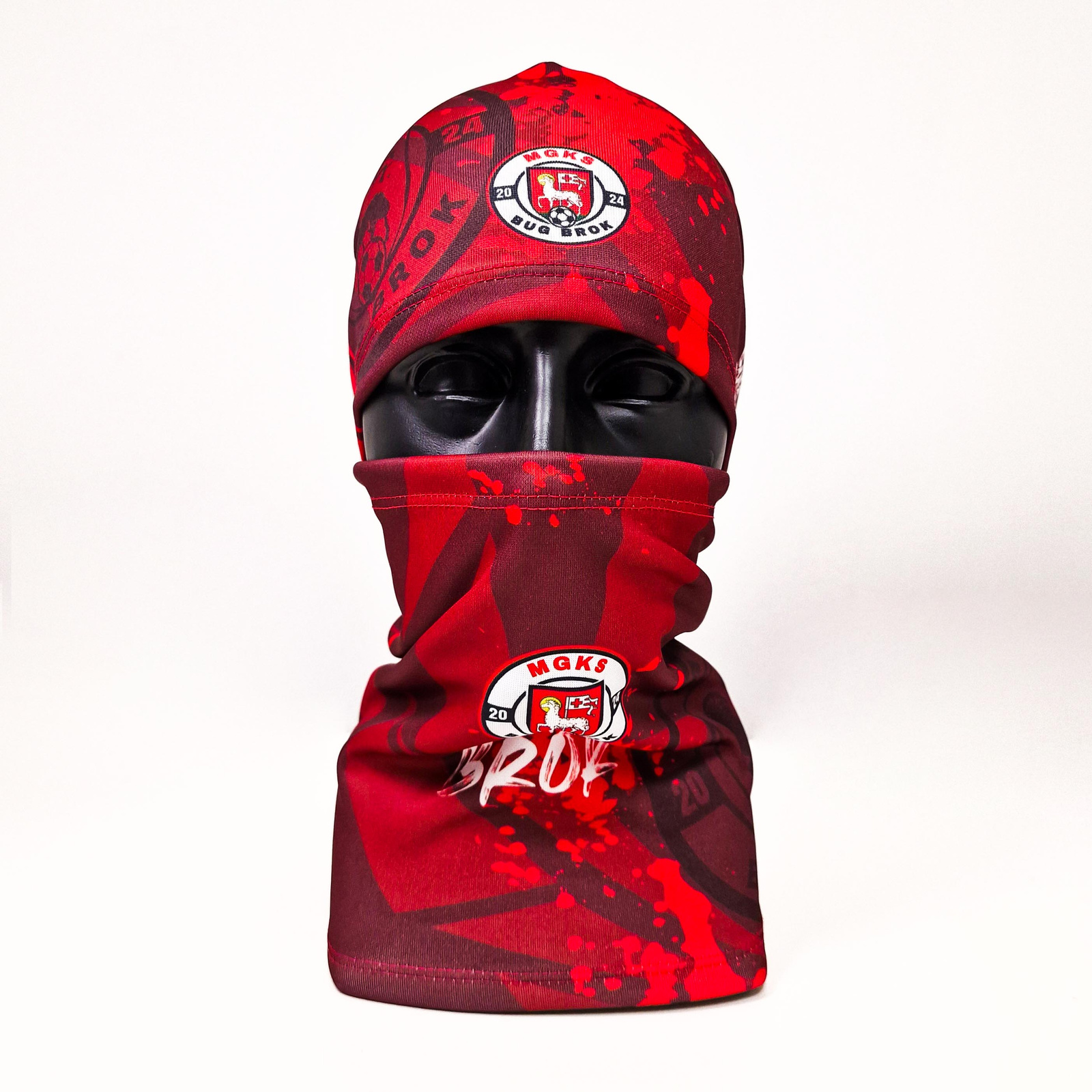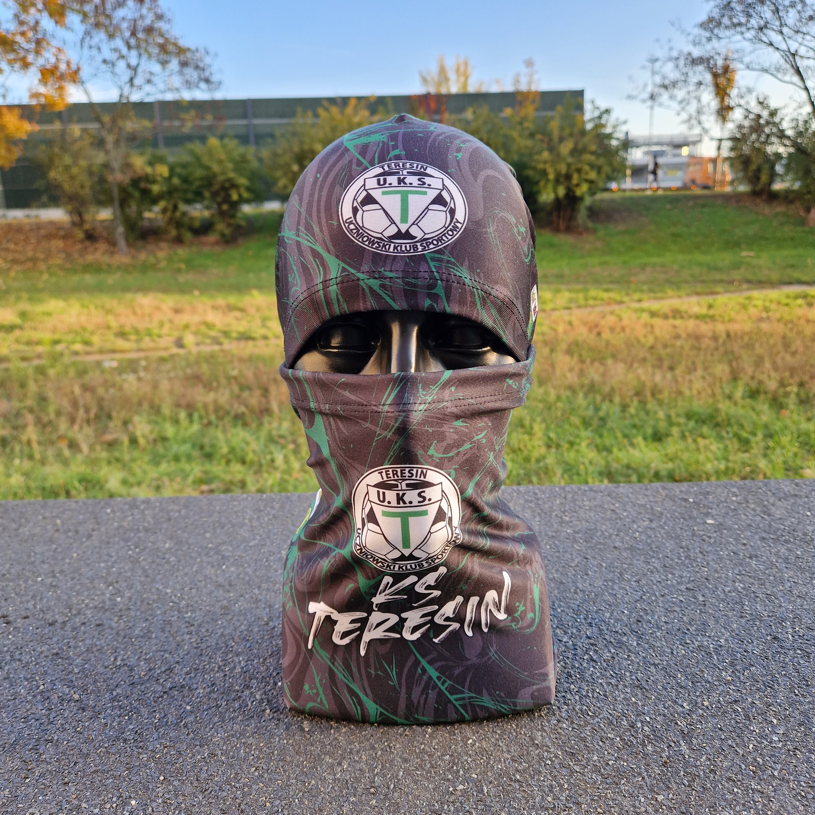 - Zestaw treningowy składający się z cienkiej czapki i komina z rozciągliwego materiału. Jeden uniwersalny rozmiar. Wykonanie sublimacja 100% - w całości dowolny wzór. Minimum 20 szt. Czas realizacji ok. 2 tygodnie.