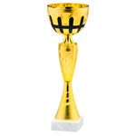 Puchar GT 25815 H25 – złoty puchar z czarnymi akcentami i białą podstawą o wysokości 25 cm
