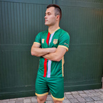 Komplet meczowy AKADEMII MAZUR KARCZEW zielony – zestaw zawiera koszulkę z herbem klubu i miasta, nadrukiem numeru i napisu na plecach oraz spodenki