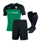 Komplet meczowy Joma KS TERESIN zielony - zielona koszulka z herbem, napisem i numerem oraz czarne spodenki