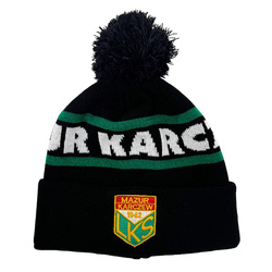 Czapka zimowa MAZUR KARCZEW z pomponem – bawełniana czapka z haftowanym herbem i z wywinięciem